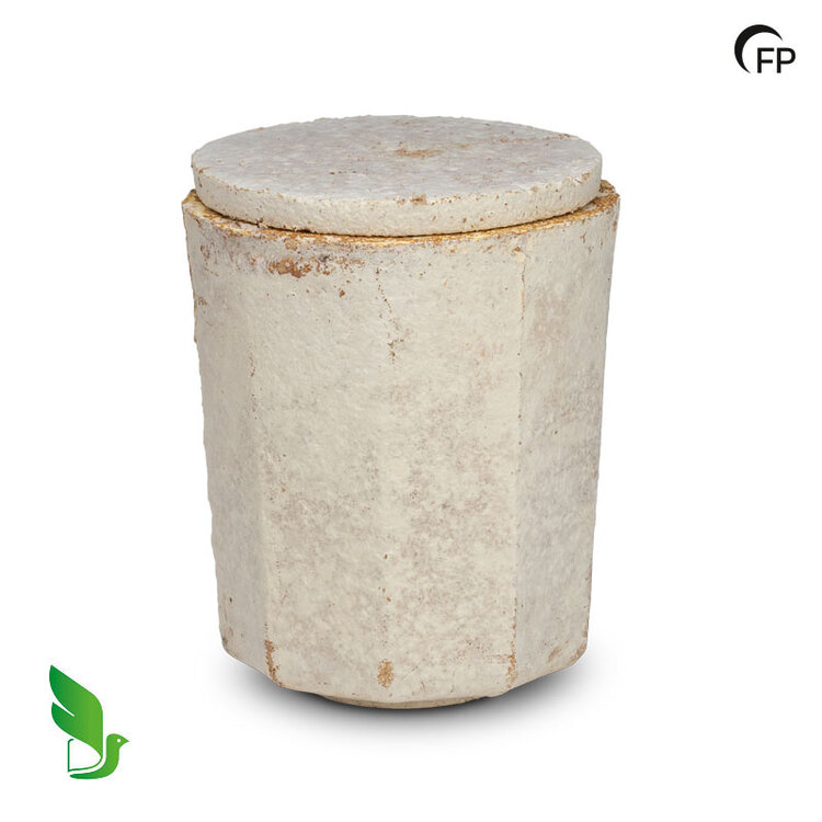 The mycelium urn is a unique and natural Dutch product. It is a sustainable and ecological urn that is completely biodegradable. The urn is made from residual waste from mushroom spawn, reusing mycelium, a natural binding agent, to create a valuable and circular product.