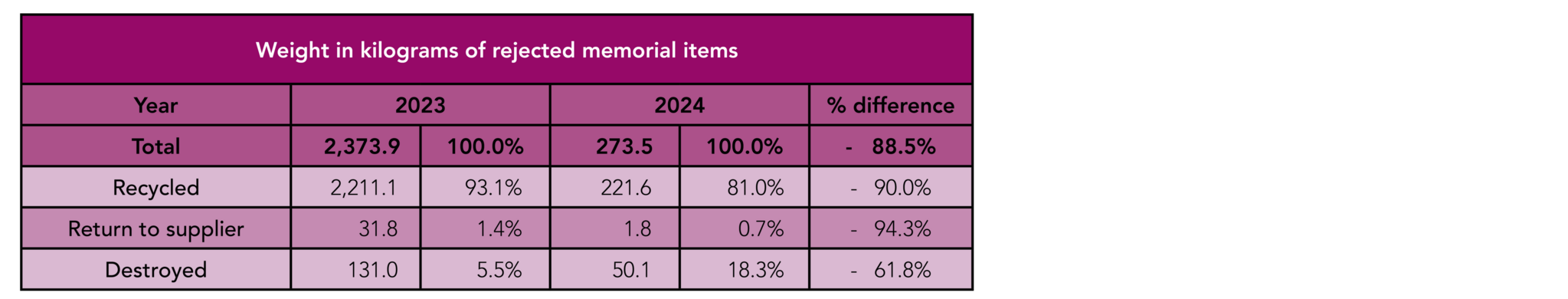 12. Responsible consumption and production• Ensuring compliance with the Advertising Code in promotional activities • 75% of the biodegradable collection is GreenLeave-certified • Alternative packaging for outbound deliveries • Applying Life Cycle Analysis to eight product groups • Waste reduction • Reduction of remnants of memorial products |