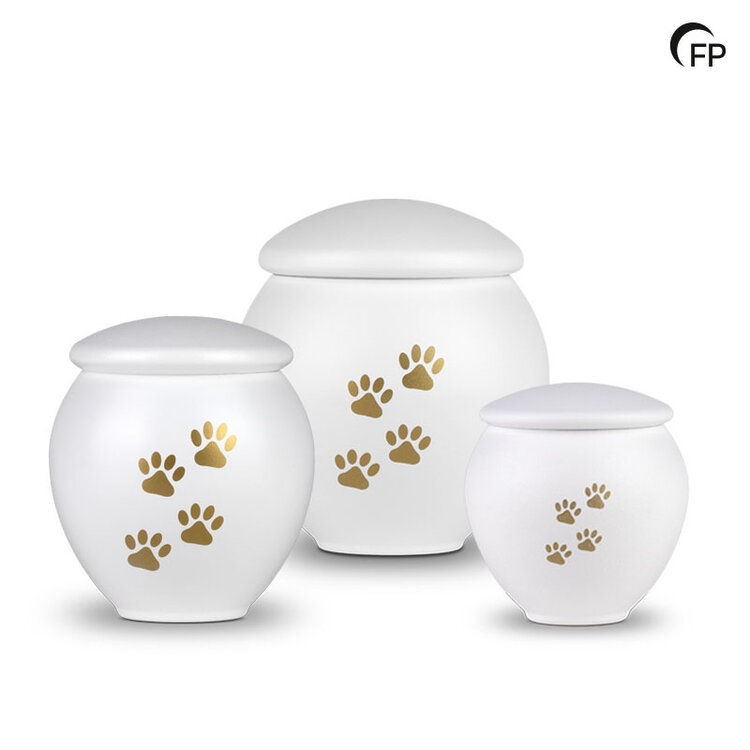 The urns in this collection have a classic, timeless look: sleek, with a simple shape, and a matte finish. They feature a refined, stylish touch, with four gold-coloured legs. The metal pet urns are available in three different sizes, which means there is always a suitable option available. Once it has been filled, the urn can be easily closed by pressing the lid firmly into the base.