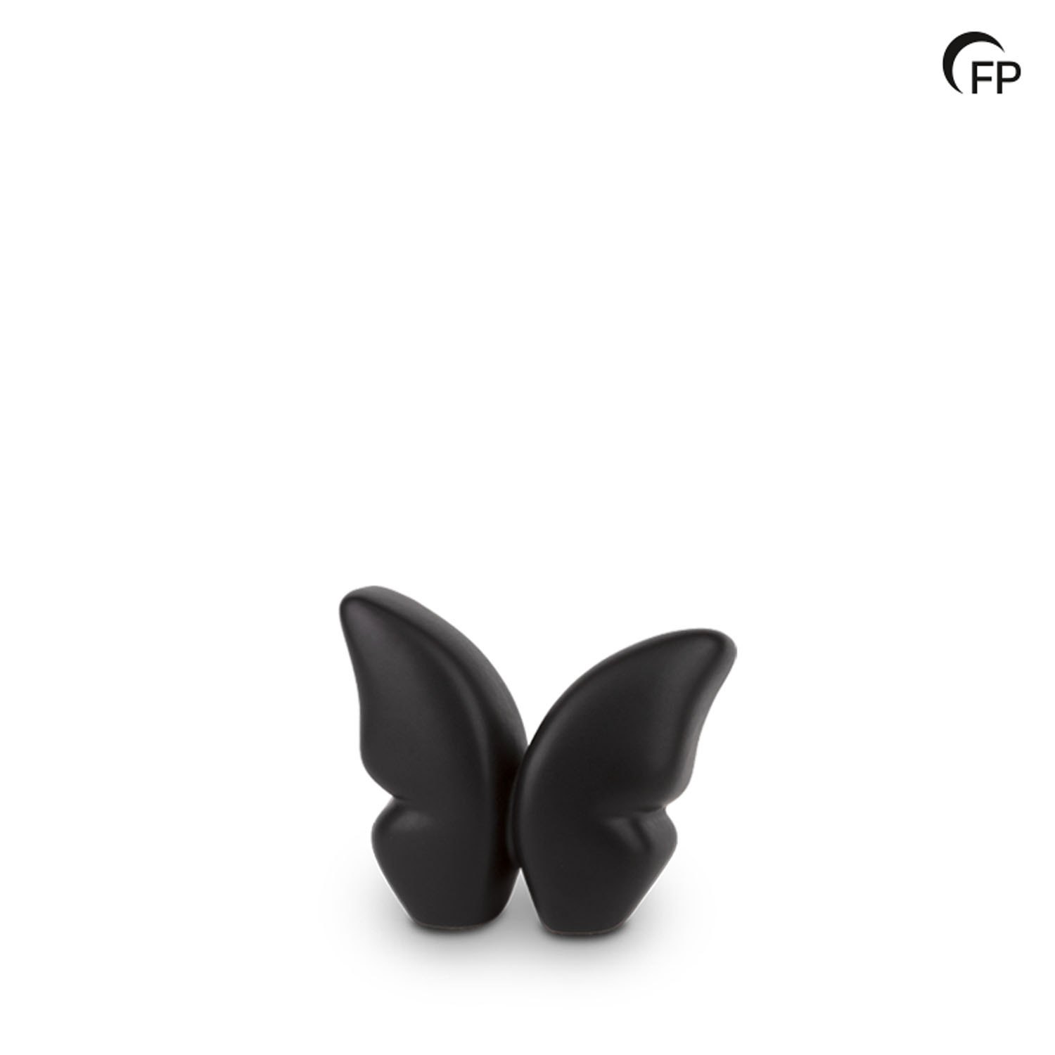 The ceramic keepsake urn in the shape of a butterfly has an elegant matte black finish that radiates peace and serenity. The design symbolises the freedom of the soul and treasured memories. This urn is also available in three larger sizes and in white or grey.