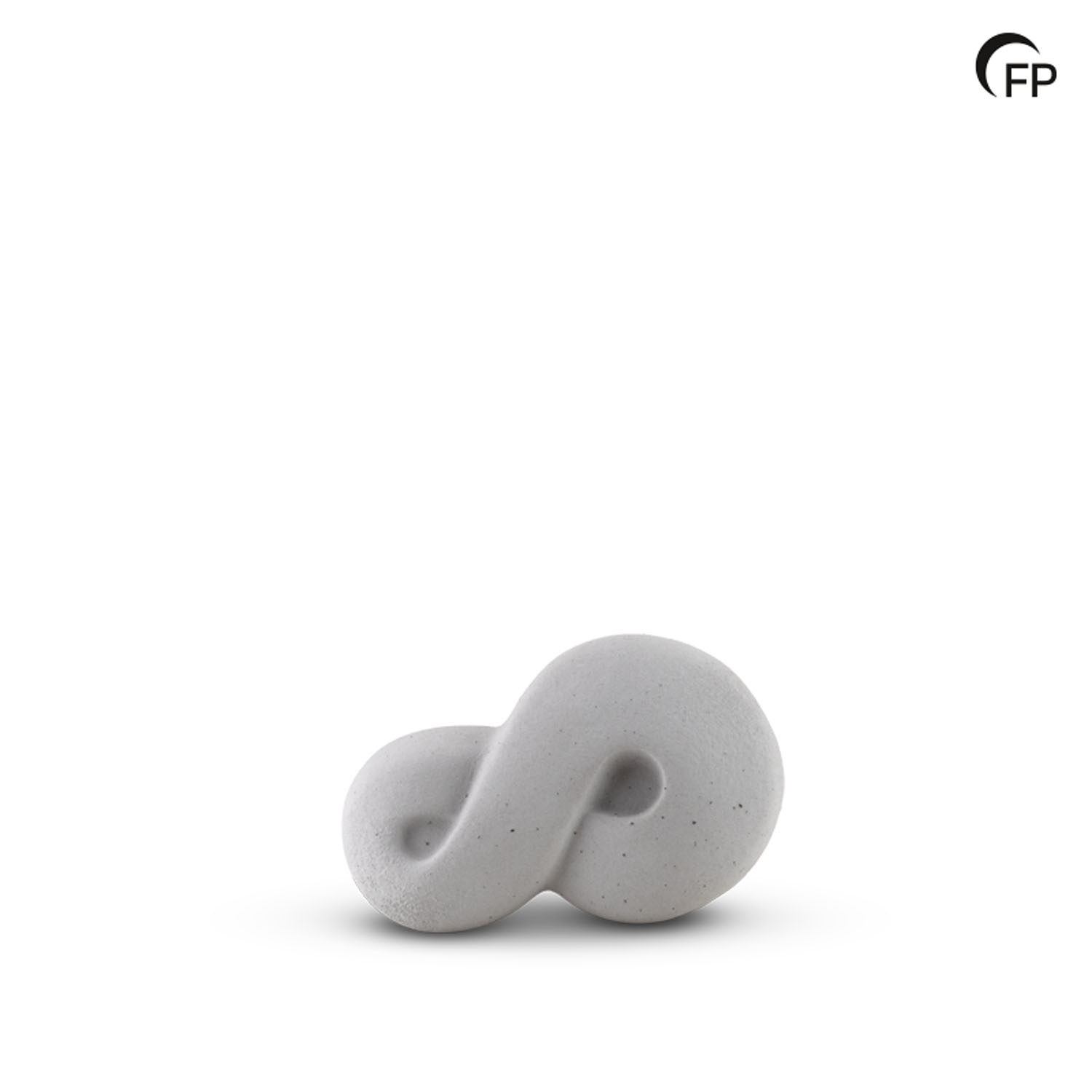 This grey keepsake infinity urn represents eternal love and lasting connection. Thanks to the stylish, compact design with a matte finish, it fits comfortably in the palm of your hand and can be easily taken anywhere. This keepsake urn is also available in white, black, brown and blue.