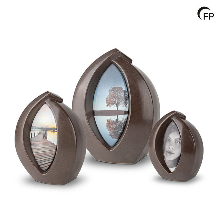 The Forever Framed urn in matte brown is an elegant and timeless tribute to cherished memories. With our user-friendly configurator, you can effortlessly design a personalised image that will be permanently displayed on the urn. The result is a subtle, symbolic and unique memento that will keep the memory alive forever. The urn is also available in two smaller sizes and in black, white and dark grey.
