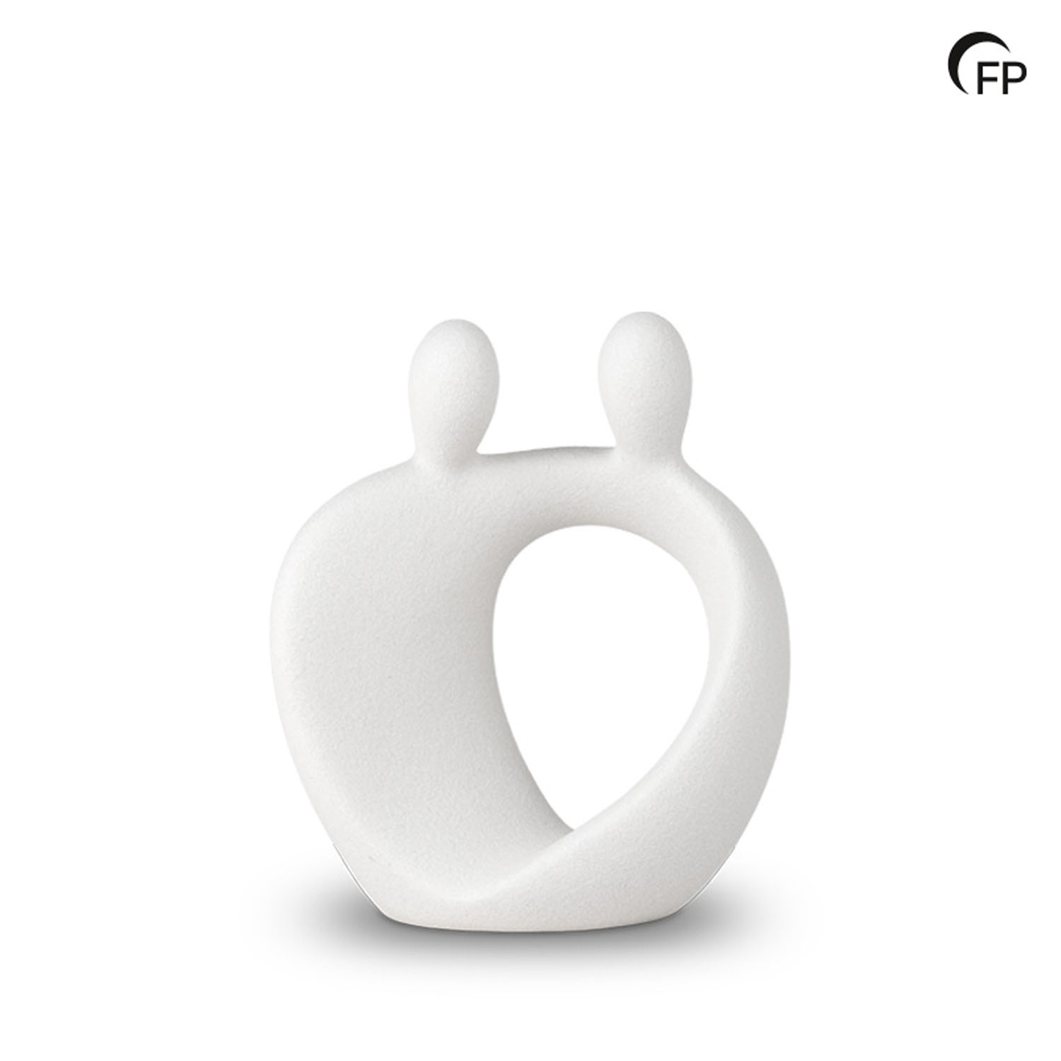 This white porcelain mini urn symbolises connection. The refined design depicts two people embracing, as a metaphor for the lasting bond that transcends love and memory. The soft lines and calm appearance ensure that this urn fits into any interior. In addition to white, this model is also available in grey.