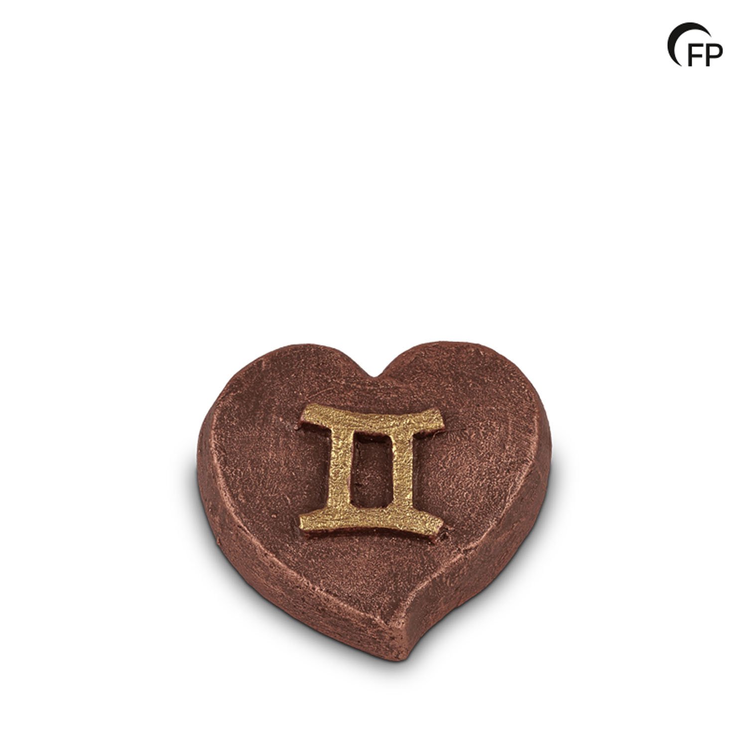This Astro heart features the sign of Gemini. If your loved one was born under this star sign, then the gold-coloured symbol reflects the character traits most commonly associated with them, such as their sociable nature and versatile personality. This Astro heart provides a perfect personal memento.